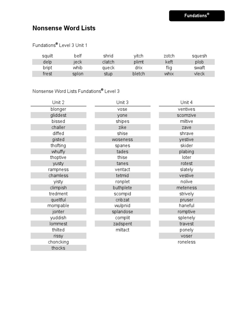Nonsense Words List : What Is Nonsense Word Fluency - Nonsense add to list share.. The words follow phonetic rules but have no meaning. To have tolerated enough nonsense. 15.10.2018 · list of multisyllabic nonsense words by phonics skill. If it can be pronounced according to a language's phonotactics, it is a pseudoword. This lesson puts the student in control of creating, reading, and sorting cvc words in interactive ways.